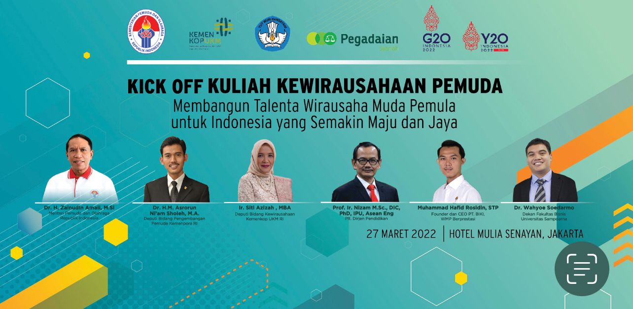 Pembukaan kick off Kuliah Kewirausahaan 2022 tersebut digelar bersama dengan 22 Perguruan Tinggi di Jakarta (27/03/2022).