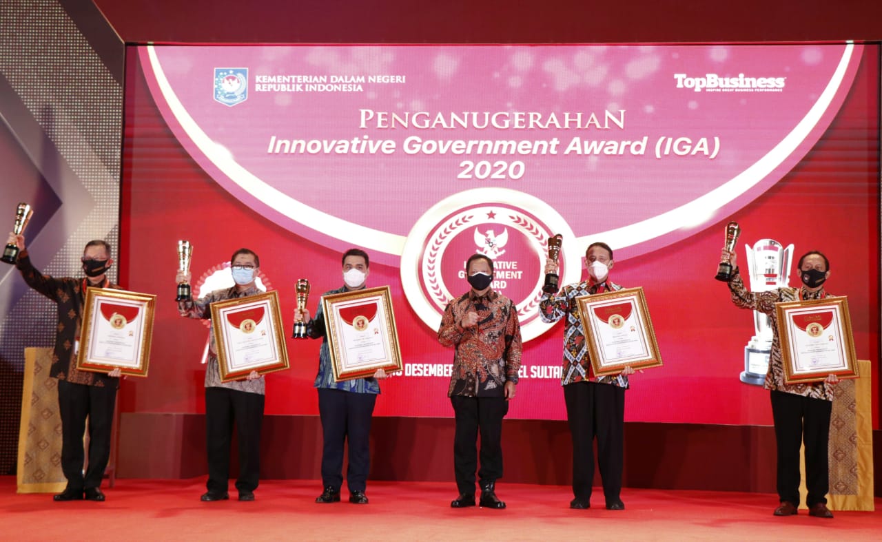 KANALNEWS.com Jakarta – Penghargaan Innovative Government Award (IGA) 2020 diberikan kepada sejumlah pemerintah daerah (pemda) yang dinilai Terinovatif dan Sangat Inovatif di Indonesia. Acara Penghargaan diberikan langsung oleh Menteri Dalam Negeri, Muhammad Tito Karnavian, pada malam puncak IGA, di The Sultan Hotel and Residence, Jumat (18/12/2020), dengan mengikuti Protokol Kesehatan PSBB Pandemi Covid-19, secara ketat.