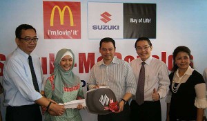 “Alasan mengapa kita bekerja sama dengan McDonald’s, karena ini yg pertama bagi Suzuki dan dimaksudkan untuk Co-branding untuk meningkatkan imej. Tidak hanya itu, kami ingin memberikan benefit lebih bukan hanya untuk konsumen McDonald’s dan suzuki,” ujar Head of 4W Marketing General Manager SIS, Edi Darmawan, di McDonald’s Kemang, Jakarta Selatan, Selasa ((27/3).