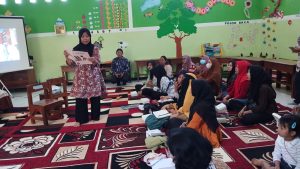 “Jadi, kami berkeliling, dan hari ini ada 3 titik yang kami kunjungi, salah satunya di TK Pembina 1 Kraksaan. Harapannya, dengan mengenalkan metode membaca nyaring, orang tua tidak lagi membiasakan anak bermain gadget. Anak justru bisa dikenalkan langsung pada buku dengan cara yang ekspresif dan menyenangkan,” jelasnya.