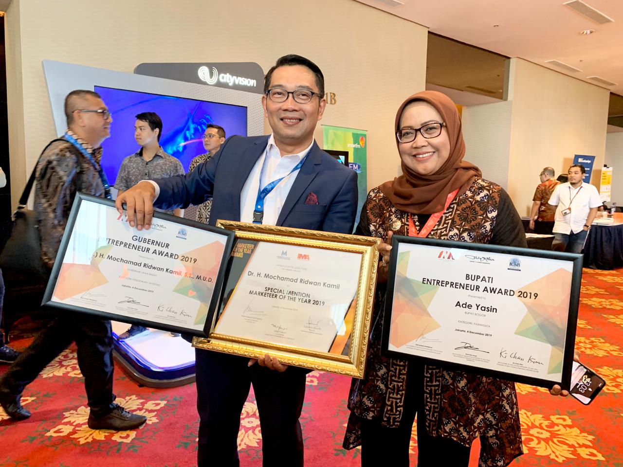 Penghargaan dari Philip Kotler Center for ASEAN itu diraih karena Ade Yasin dianggap sukses mengembangkan sektor pariwisata di Kabupaten Bogor.