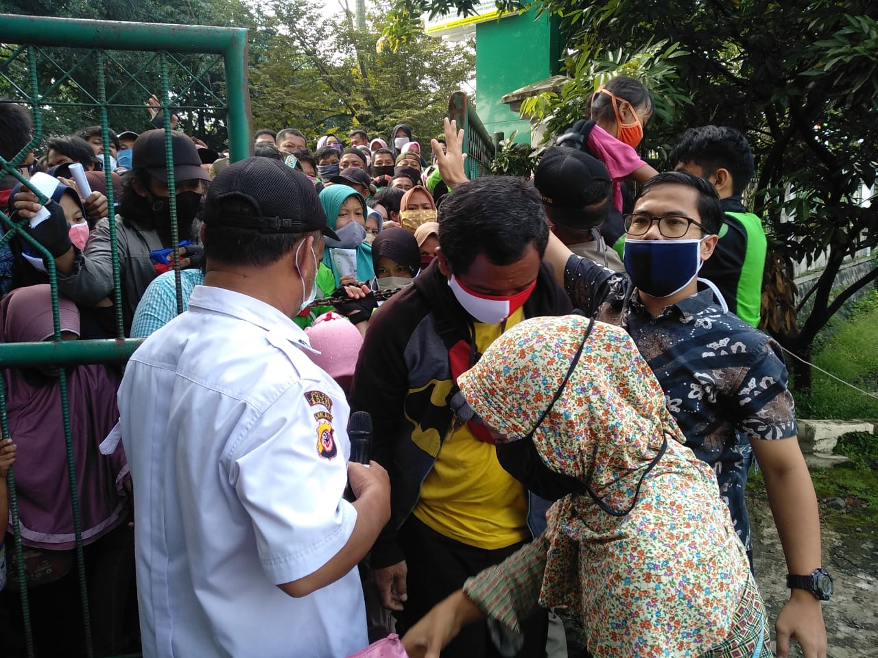 Kanalnews.co, Cibinong – Halaman kantor Badan Amil Zakat Nasional (BAZNAS) Kabupaten Bogor mendadak ramai oleh ratusan orang yang datang untuk mendapatkan bantuan sembako. Kericuhan pun tak terhindarkan. Tampak security dan beberapa personil Satpol PP sibuk mengamankan lokasi agar tidak terjadi kericuhan yang lebih besar.