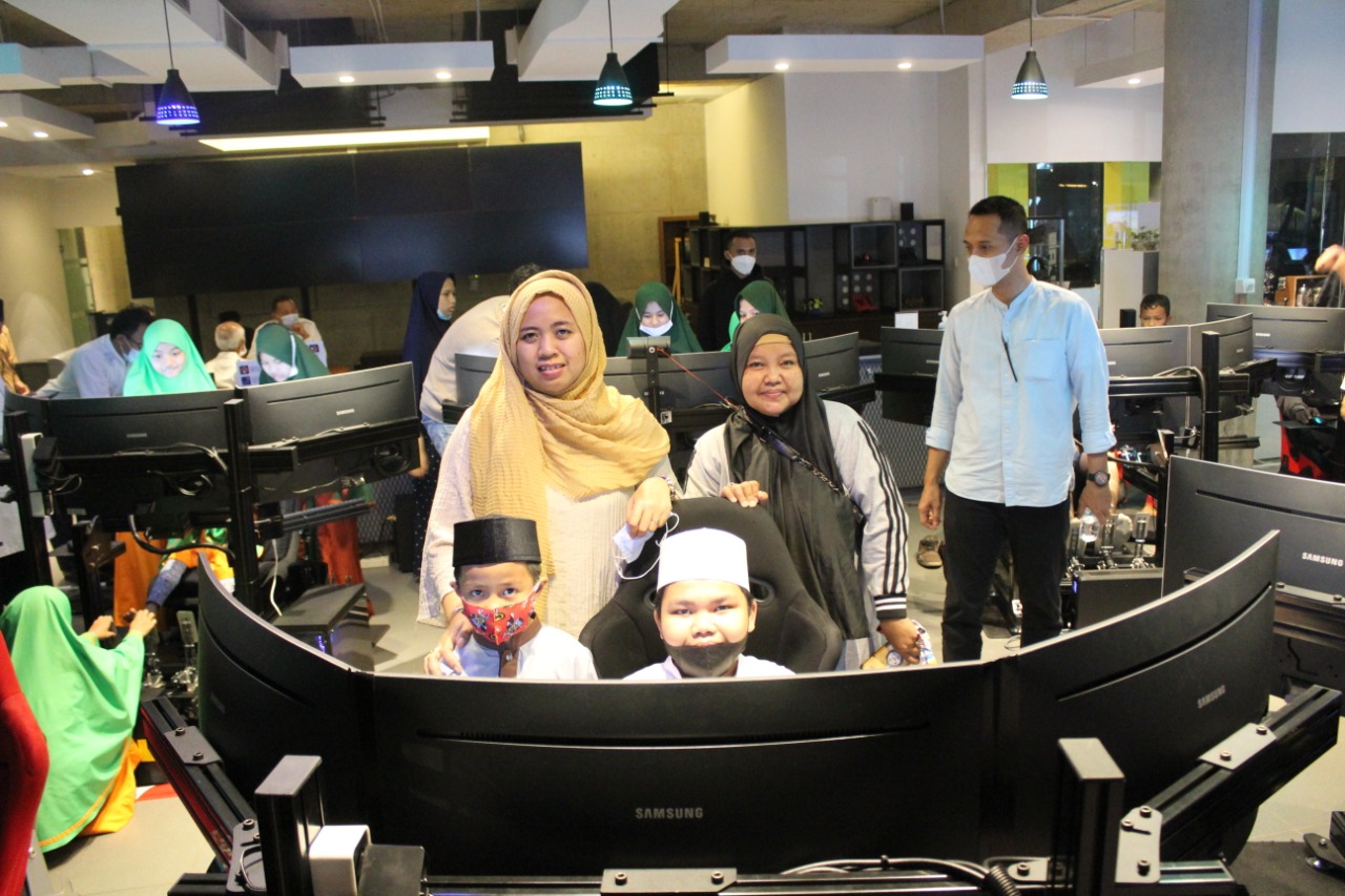 Usai Bukber bersama Pejabat dan Pegawai LPDUK, pimpinan LPDUK juga memberikan kesempatan kepada anak-anak yatim untuk menjajal fasilitas Digital Motorsport P1 ADMI di Lantai 1 kantor LPDUK.