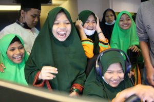 Tidak hanya anak yatim putra, anak yatim putri dari Asrama Tanah Baru juga ikut antri untuk menjajal digital motorsports tersebut. Bahkan ada yang menangis karena kelamaan nunggu antrian.