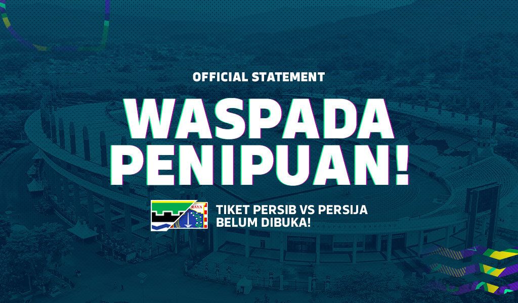 Kanalnews.co, BANDUNG– Manajemen Persib Bandung mengimbau kepada Bobotoh waspada jika ada modus penipuan penjualan tiket pertandingan Persib kontra Persija Jakarta. Sebab, hingga saat ini Persib belum menjual tiket karena masih dalam upaya banding.