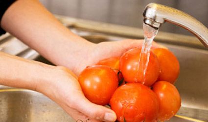 Ingat bahwa buah dan sayuran yang kita beli mungkin terlihat bersih, namun kita tidak bisa melihat bakteri dan bahan kimia yang ada. Buah dan sayuran perlu dicuci sebelum di makan terutama jika ingin memakan buah dan sayur mentah.