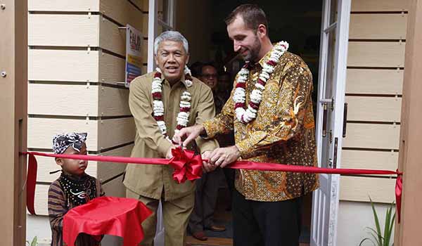 Presiden Direktur Sarihusada Gutavo Hildebrand dan Penjabat Walikota Yogyakarta Drs. Sulistiyo, SH.CN.M.Si secara bersama-sama melakukan pengguntingan pita menandai peresmian Empat wahana di Taman Pintar yang terdiri dari Gedung PAUD Barat, Gedung PAUD Timur, Taman Air Menari dan Wahana Ayo Melek Gizi.