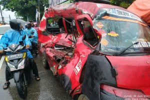 Saat kecelakaan, angkot dalam keadaan kosong, hanya berisi satu sopir bernama Martin (42).