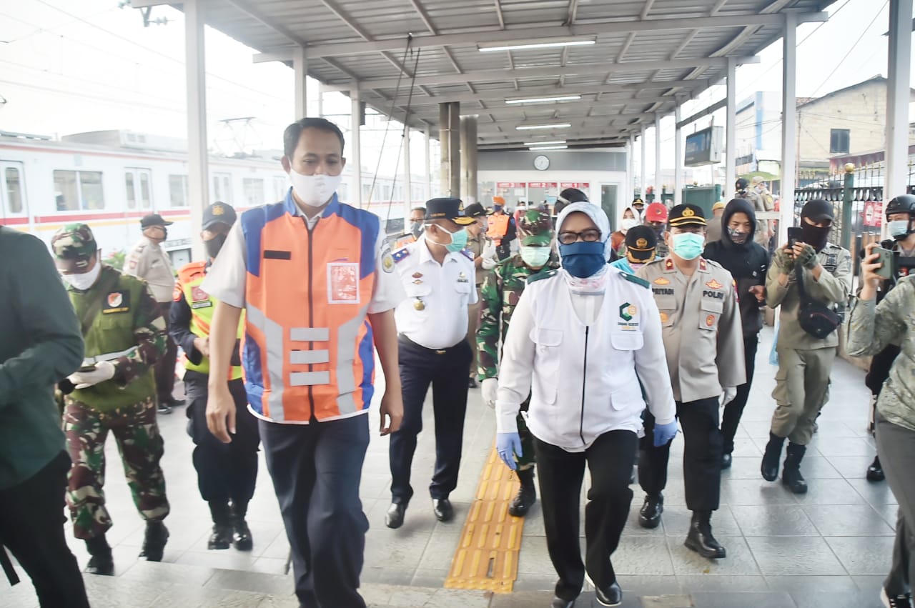 Kanalnews.co, Bojong Gede– Bupati Bogor, Ade Yasin aktivitas KRL Jabodetabek di stasiun Bojong Gede untuk melihat pengguna kereta api commuter line dari Kabupaten Bogor, pada Senin (20/4).