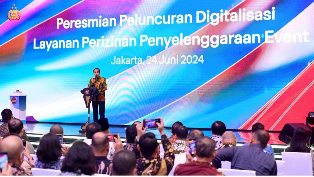 Kanalnews.co, JAKARTA — Digitalisasi layanan perizinan penyelenggaraan event resmi diluncurkan Presiden Joko Widodo pada Senin, (24/6/2024) di The Tribrata Darmawangsa, Jakarta. Digitalisasi layanan tersebut diluncurkan bertujuan mempercepat proses perizinan penyelenggaraan event di Indonesia.