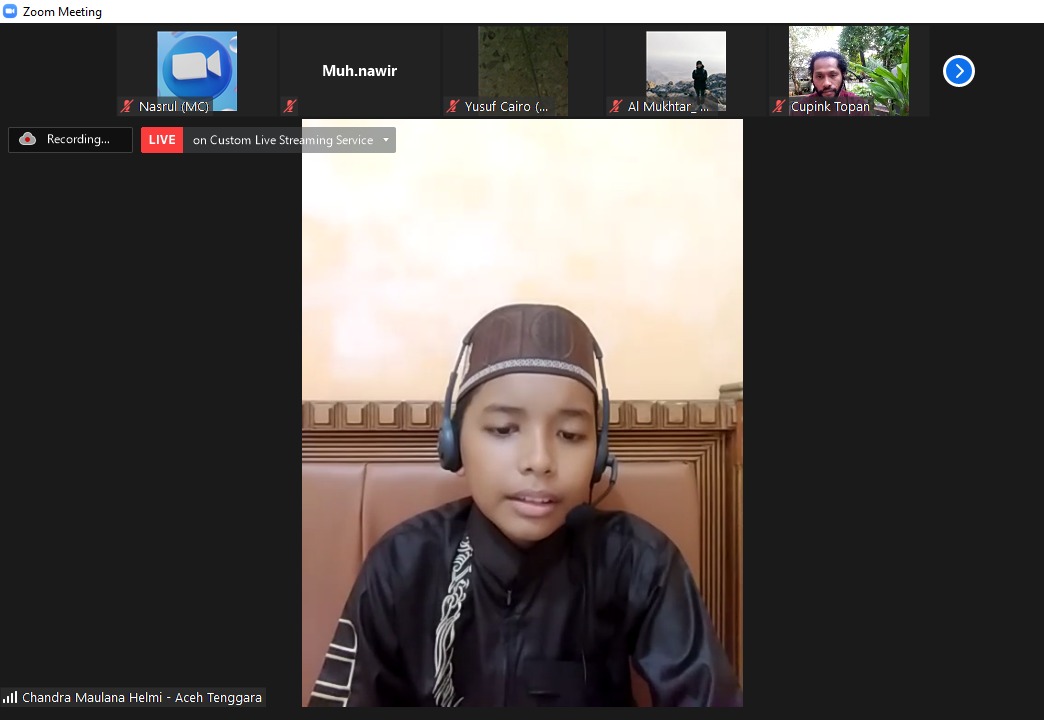 Kanalnews.co, Jakarta – Kegiatan Gebyar Kemerdekaan RI ke-75 Tahun & Pekan Muharram 1442 H yang melombakan lantunan adzan dan senandung sholawat, berlangsung semarak. Digelar secara virtual lewat aplikasi zoom karena masih dalam situasi pandemi, kegiatan ini diikuti ratusan peserta dari berbagai daerah bahkan dari luar negeri.