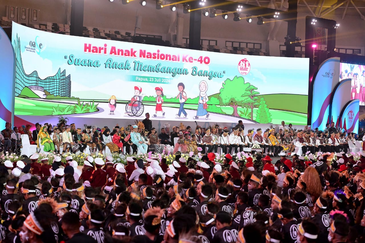 Kanalnews.co, PAPUA — Puncak Peringatan Hari Anak Nasional Tahun 2024 yang berlangsung di Istora Papua Bangkit, Kabupaten Jayapura, Provinsi Papua, pada Selasa, (23/7/2024) turut dihadiri Presiden Joko Widodo bersama Ibu Iriana Joko Widodo.