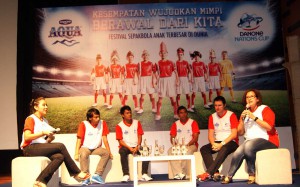 KANALNEWS.co. Jakarta – Ajang Aqua Danone Nations Cup (Aqua-DNC) 2012 kembali digelar di Indonesia. Tidak kurang lebih dari 5.000 tim yang berasal dari 14 kota yakni Aceh, Medan, Padang, Pekanbaru, Tangerang, Bandung, Semarang, Malang/Surabaya, Denpasar, Yogyakarta, Banjarmasin, Makassar, Manado dan Jayapura ikut serta di ajang tersebut.