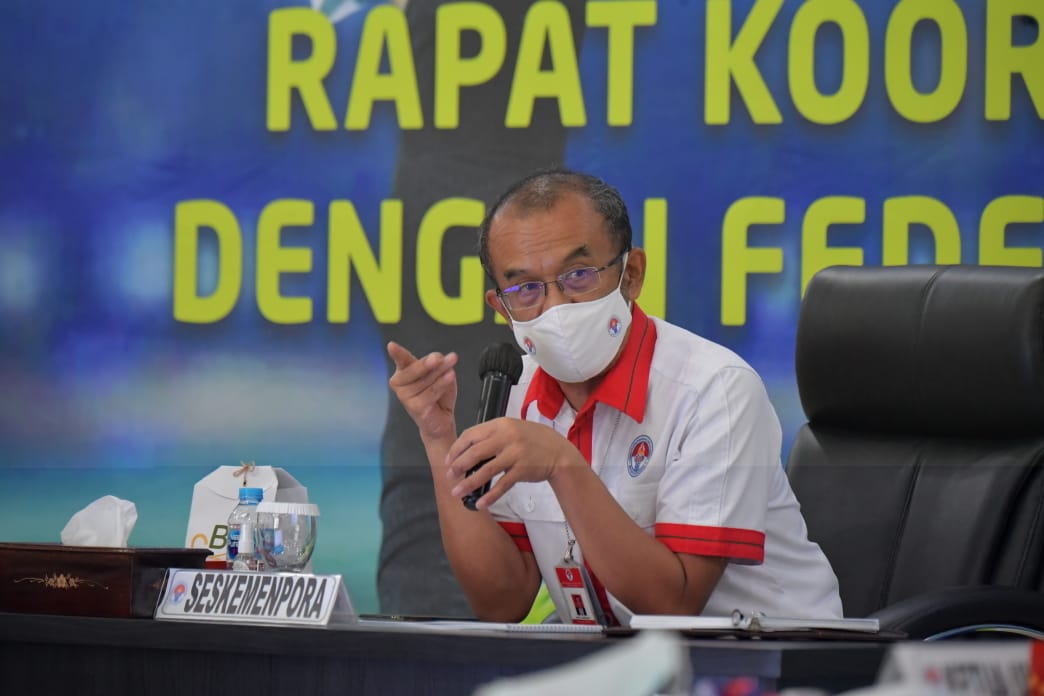 “Kebetulan pada awal Minggu ini Pak Presiden telah memimpin rapat terbatas. Disampaikan Pak Menpora kepada kami bahwa Pak Presiden happy dengan persiapan PON. Kemudian mengenai atlet, kontingen divaksin sebelum berangkat. Bahkan arahan bapak Presiden, penduduk disekitar venue juga harus divaksin,” jelas Sesmenpora.