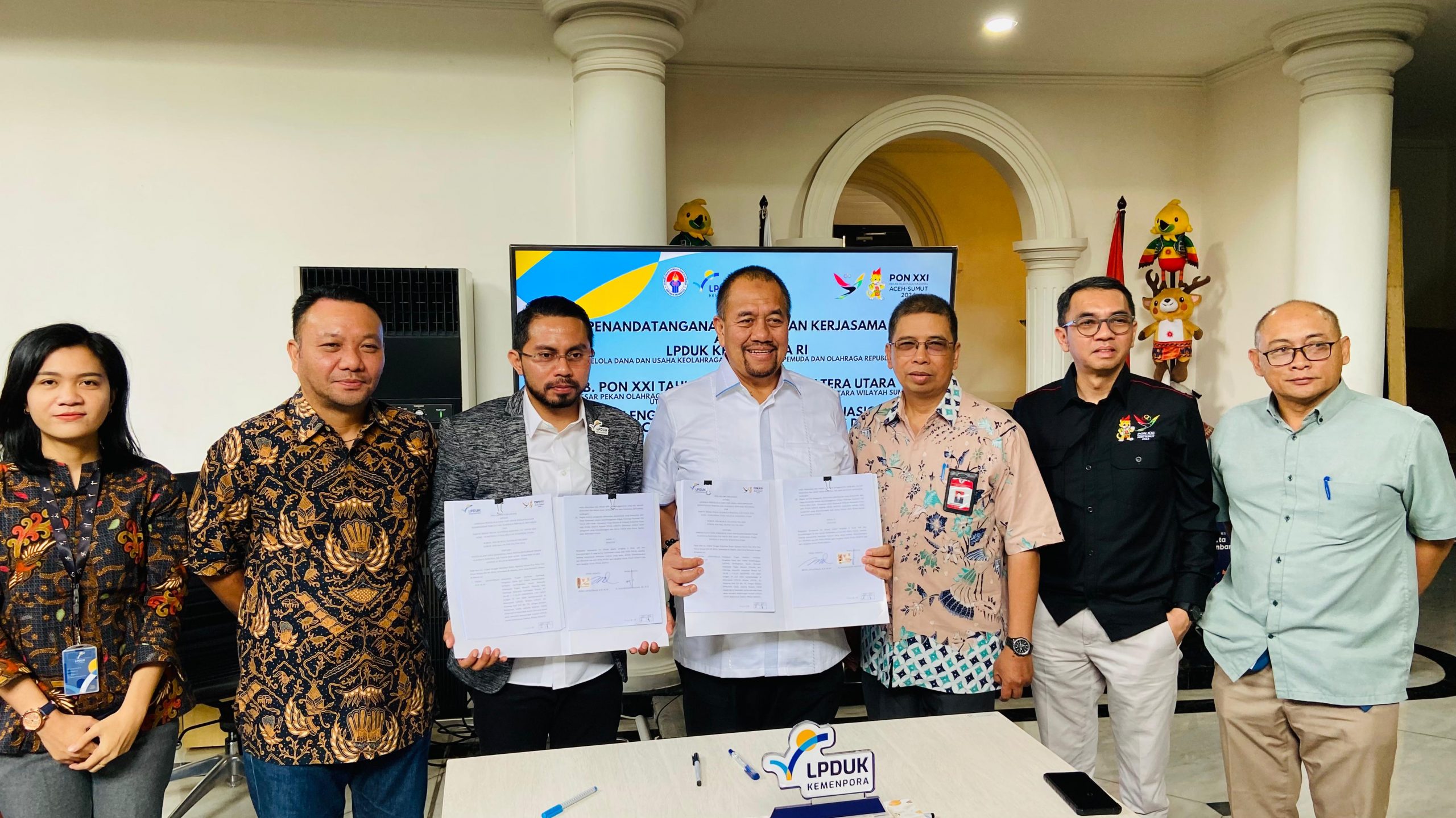 Kanalnews.co, JAKARTA-Lembaga Pengelola Dana dan Usaha Keolahragaan (LPDUK) Kemenpora dan Pengurus Besar Pekan Olahraga Nasional (PB PON) XXI Tahun 2024 Aceh-Sumatera Utara Wilayah Sumatera Utara (Sumut) sepakat menjalin kerjasama terkait pengelolaan dana komersial PON 2024.