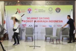 “Selamat Datang Para Patriot Olahraga Indonesia” kalimat yang terpampang di backdrop