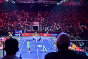 Kemudian, dilanjutkan sektor ganda putra lainnya yaitu Fajar Alfian/Muhammad Rian Ardianto kontra Kim Won Ho/Seo Seung Jae (Korea Selatan). Dukungan dan semangat diberikan Menpora Dito dan Wamenpora Taufik dari tribun VVIP.