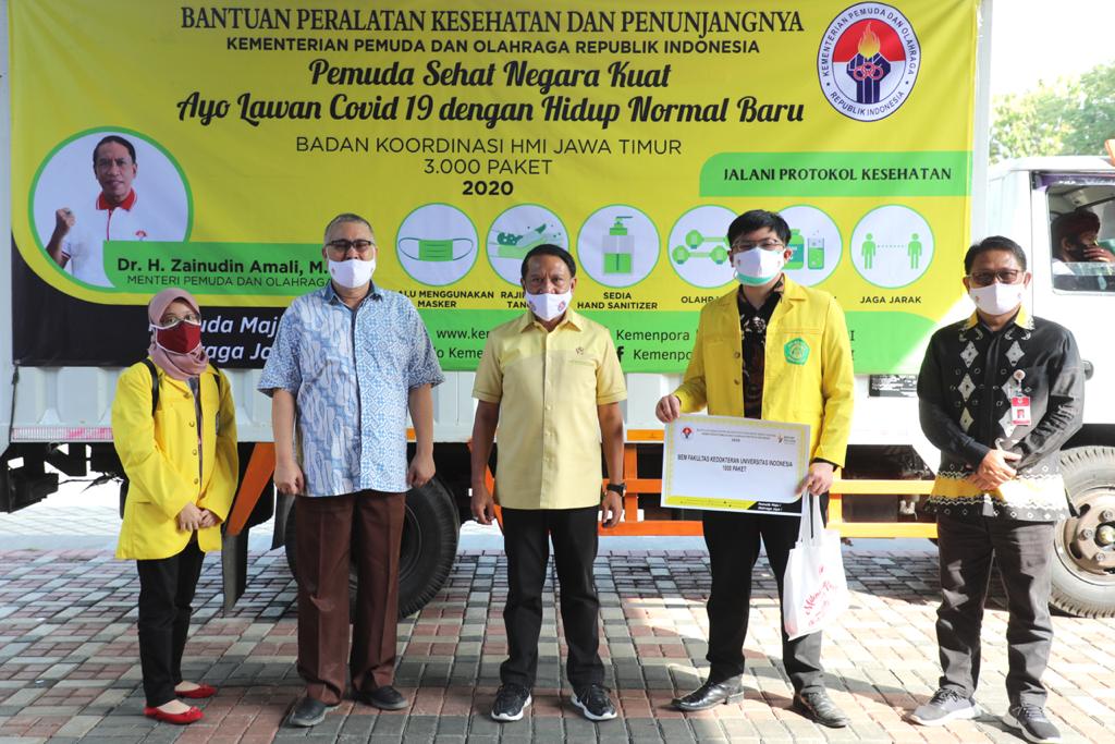 Bantuan Kemenpora berupa masker, hand sanitizer, hand soap dan vitamin diberikan kepada BEM Fakultas Kedokteran Universitas Indonesia sebanyak 1.000 paket, PP SAPMA Pemuda Pancasila, sebanyak 1.750 paket, Badan Koordinasi Himpunan Mahasiswa Islam (HMI) Jawa Timur, sebanyak 3.000 paket dan PB Serikat Mahasiswa Muslimin Indonesia (SEMMI) sebanyak 1.791 paket.