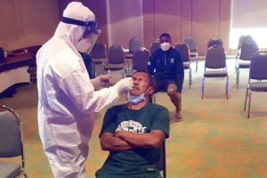 Persebaya dijadwalkan melawan Persipura Jayapura di laga pekan ke-23 Liga 1 2021/2022 di Stadion Gelora I Gusti Ngurah Rai, Bali, Minggu (6/2). Seperti biasanya para pemain melakukan tes swab.